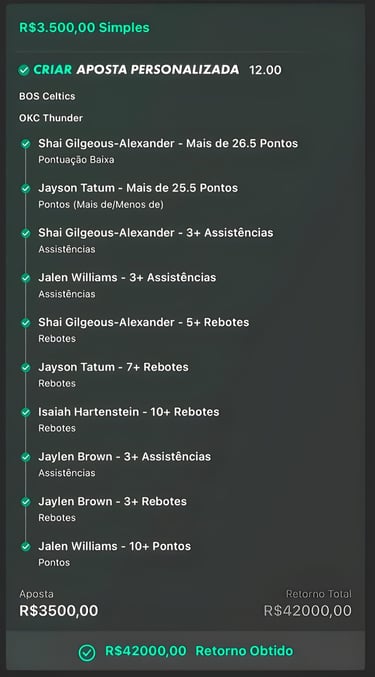 Mas calma... A diversão também faz parte! De vez em quando, soltamos apostas com odds mais altas, só para dar aquela emoção e testar a sorte!